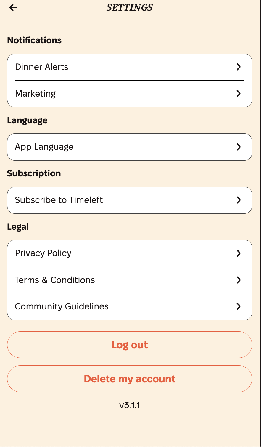 在“设置”(https://app.timeleft.com/app/settings/user-settings) 部分,您还可以更改订阅、阅读条款和条件、查看 Timeleft 隐私政策等。